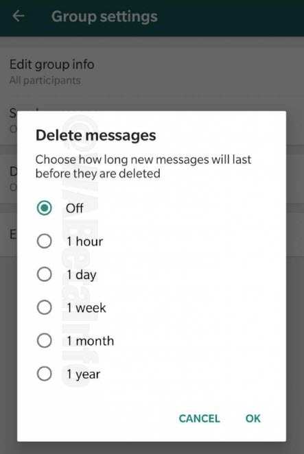 Con esso i messaggi avranno una certa durata. Una volta superato, non sarà possibile recuperarli (sebbene ciò non impedisca al chiamante di copiarli o creare schermate, ovviamente).
