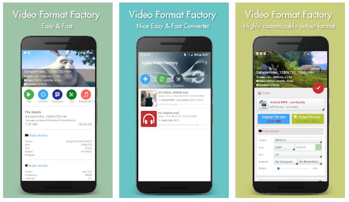 Se solo un momento fa stavamo parlando di Format Factory per PC, ora facciamo lo stesso con la sua versione per smartphone, Video Format Factory . In questa applicazione abbiamo gli elementi essenziali per tutto ciò di cui un convertitore video ha bisogno, ovvero per poter cambiare i formati senza alcun problema, tagliare alcune parti di cui abbiamo bisogno e ricalibrare la qualità in tutti i suoi bordi in modo da non trovare complicazioni durante l'esportazione . Non ce ne sono più.