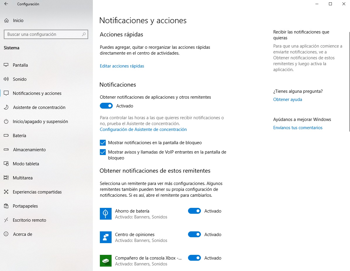 Quando hai fatto clic su " Notifiche e azioni ", nota che hai diverse schede da attivare o meno. Il primo è il più importante: se vuoi ricevere notifiche. Quindi, senza anestesia. In tal caso, in basso troverai tutte le opzioni disponibili, dalle notifiche sul risparmio della batteria alla sincronizzazione con altri servizi Microsoft (come Xbox), la riproduzione automatica e molto altro.