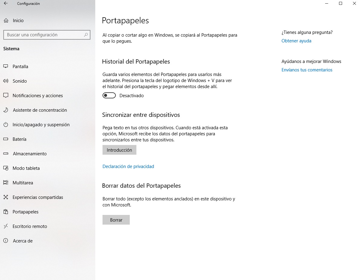 D'altra parte, è possibile sincronizzare tutto negli Appunti e nello smartphone tra i dispositivi Windows. Fai clic su " Introduzione " per attivare questa opzione che consente qualcosa di molto semplice: che possiamo trasferire informazioni tra computer su cui è installato Windows 10 .