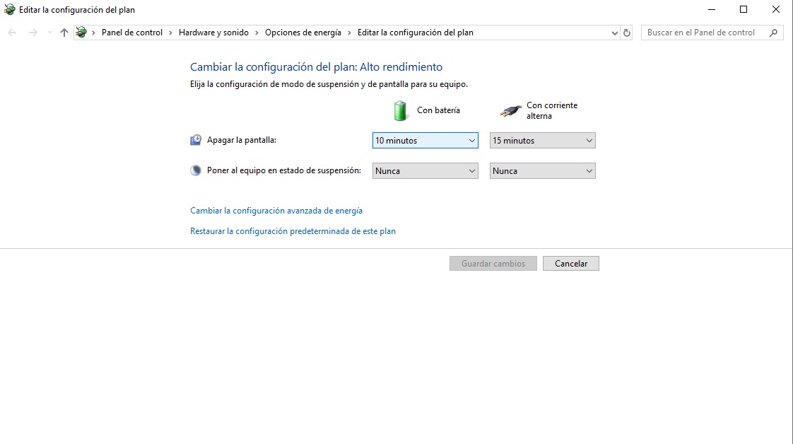 Una volta che sei dentro, Windows ti mostrerà tutti i piani di potere che ha al momento, ma resta con uno chiamato « High performance «. La nostra raccomandazione è di controllare sì o sì in modo che il PC consumi più energia … ma funzioni a piena capacità. Inoltre, ricorda che se utilizzi un laptop, dai la priorità che il consumo della batteria non sia troppo elevato …