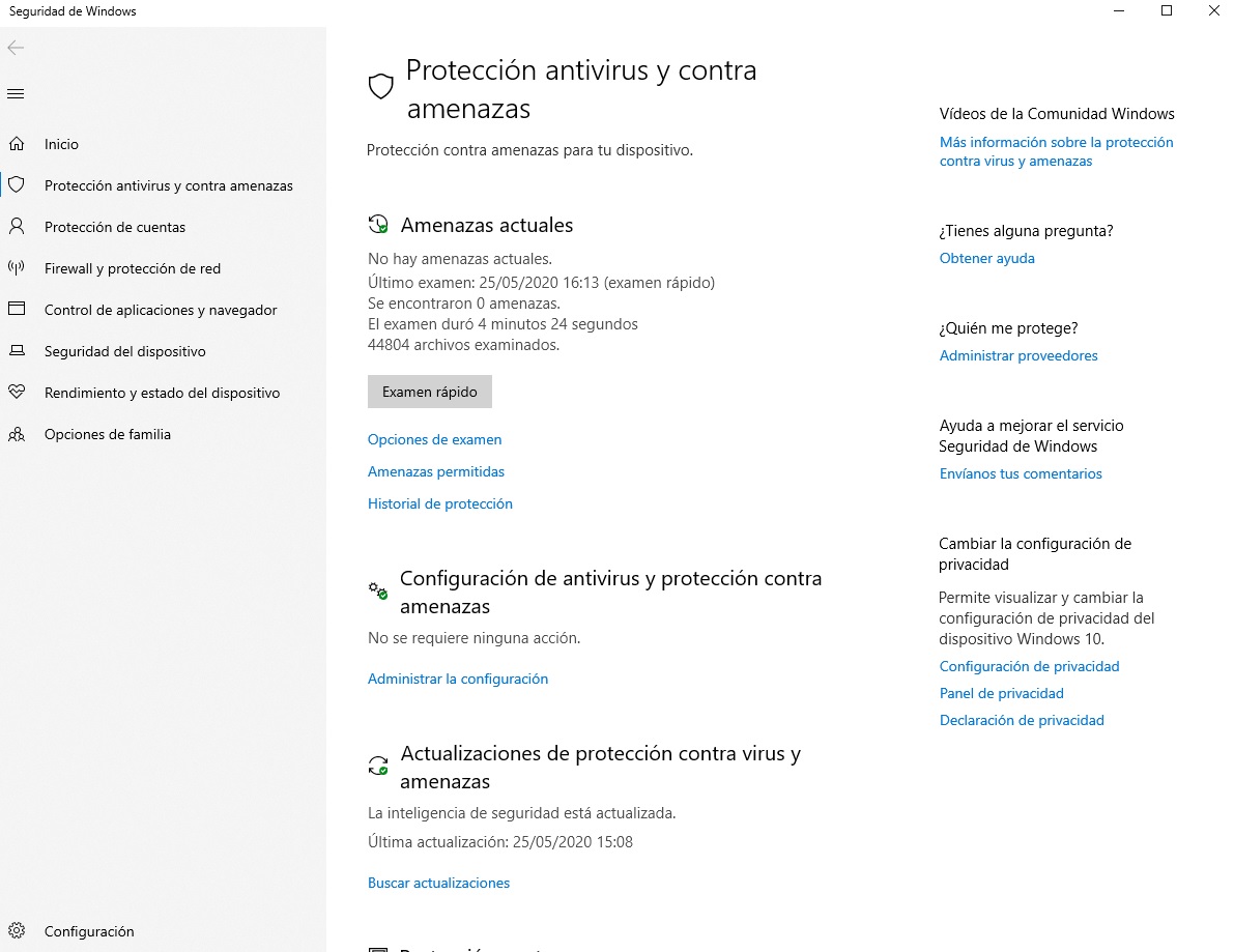 Per eseguire questo processo, andare su "Configurazione" e quindi fare clic su "Aggiornamento e sicurezza". Proprio lì avrai una sezione chiamata "Sicurezza di Windows", fai clic senza paura e premi "Apri sicurezza di Windows" -> "Protezione antivirus e delle minacce". Quando ti trovi a questo punto, fai clic su "Esame rapido" e lascia che Windows Defender cerchi tutto quel software dannoso che potrebbe essere la causa del rallentamento del tuo PC. Chissà …