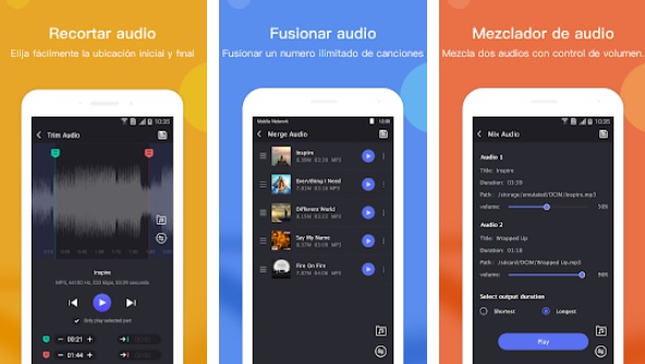 Audio Recorder and Editor si distingue per offrire registrazioni di audio di alta qualità e per fornire strumenti di base come tagliare, incollare e unire file musicali. Offre anche un mixer funzionale con il quale è possibile unire due tracce, migliorare la sua qualità audio e anche aggiungere tutti i tipi di effetti.