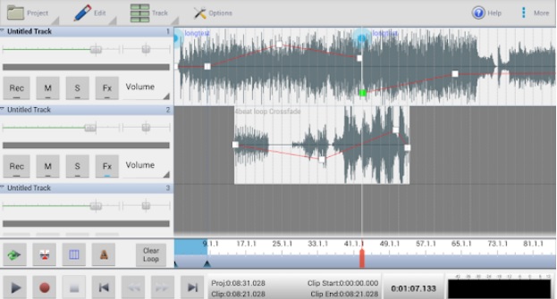 WaveEditor è un’ottima opzione se stai cercando un programma con mixer e alta qualità per dispositivi Android. Oltre a tutto ciò, puoi registrare le tue tracce direttamente dall’applicazione, quindi non dovrai mai usare il classico registratore audio.