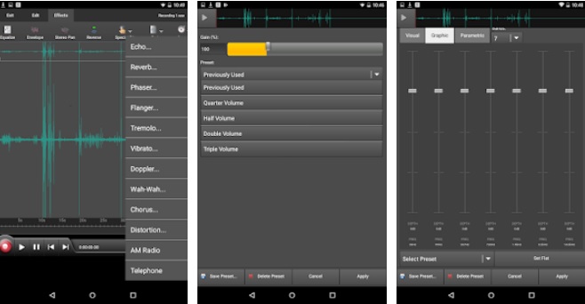 Uno dei punti di forza di WavePad Audio Editor è la sua incredibile versatilità nel caso di un’app mobile. Da esso avrai quasi tutte le opzioni di un software di editing desktop. E oltre ad accettare più formati audio, anche ha un equalizzatore e puoi normalizzare le tue tracce, amplificarle e persino aggiungere opzioni di eco e riverbero.