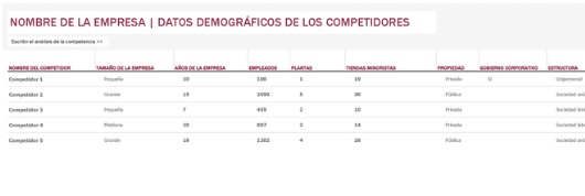 - Analisi della concorrenza – Un altro modello davvero utile per un'azienda è quello dell'analisi della concorrenza. Questo è appositamente progettato per creare report sull'analisi dei potenziali concorrenti sul mercato e, attraverso di essi, estrapolare possibili miglioramenti per la tua azienda.