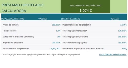 - Calcolatore mutui – Questo modello ti consente di calcolare tutti i pagamenti effettuati per pagare i mutui. Usarlo è molto semplice, per questo devi semplicemente inserire l'importo, il tasso e la durata del tuo mutuo.