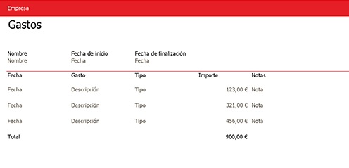 - Giornale delle spese- Questo modello è eccellente sia per i liberi professionisti che per tutti coloro che hanno un budget mensile chiuso che deve avere una prova delle proprie spese. In esso puoi inserire tutte le spese che fai, la data di acquisto, l'importo, il tipo di prodotto e ovviamente il suo prezzo.