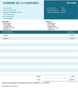 - Fattura di base– Modello chiaro e molto semplice da utilizzare con tutti i dati di base che qualsiasi azienda o libero professionista deve mostrare nella propria fattura. Questo è molto attraente e facilmente personalizzabile. Inoltre, calcola automaticamente il totale della fattura, in modo da poter dimenticare di calcolare le spese a mano.
