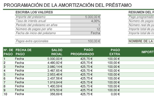 - Programma di rimborso dei prestiti – Attualmente è molto comune richiedere un prestito per poter uscire alla fine di ogni mese. Per tenere traccia dei pagamenti di questo prestito è consigliabile utilizzare un modello come questo in cui in ogni momento saprai quanto devi.