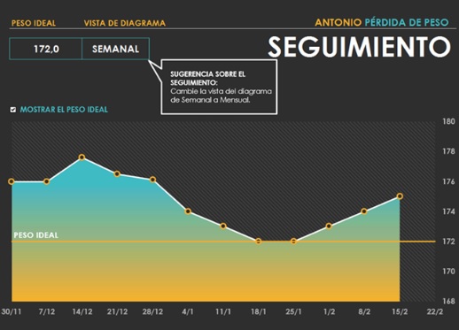 - Seguace della perdita di peso– Grazie a questo modello puoi vedere attraverso un grafico tutti i progressi fatti nella tua crociata per perdere peso. Questo è l'ideale per contrassegnare il peso ideale e seguire gradualmente i risultati.