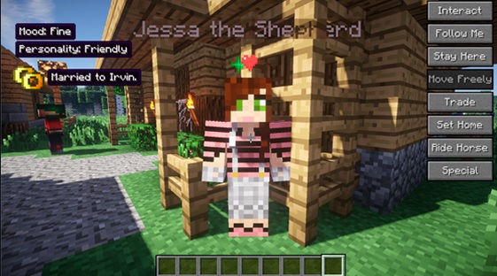 A differenza di altre mod, Minecraft Comes Alive non sostituisce alcun tipo di sistema o strumento di gioco ma aggiunge semplicemente la possibilità di fare amicizia con gli abitanti del mondo della griglia. Oltre a questo puoi avere figli guardarli crescere e anche quando sono adulti ti aiuteranno con le tue faccende, renderanno la tua vita e persino diventeranno una nonna.