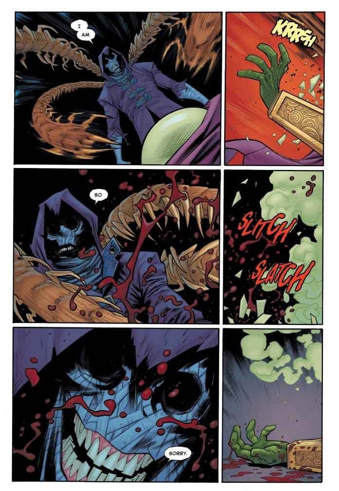 Sorpresa: il terapeuta era un'illusione (quale ironia) di un demone che sembra aver raggiunto un accordo con Beck. Il demone riesce a far pronunciare a Mysterio il suo nome, che sembra essere in grado di invocare completamente la Terra. Come ricompensa, il demone uccide brutalmente Mysterio.