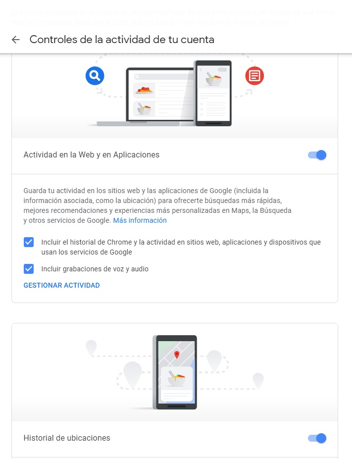 Google registra i nostri passi in ogni momento . Ogni cosa che facciamo nel browser o in uno dei suoi prodotti, come la semplice ricerca di un'e-mail in questione, l'azienda la registra sui suoi server. La "scusa" è ciò che già saprai: "I dati salvati ti consentono di usufruire di tutti i servizi Google in un modo più personalizzato". Tutto molto bello, ma non tutti sono così permissivi.