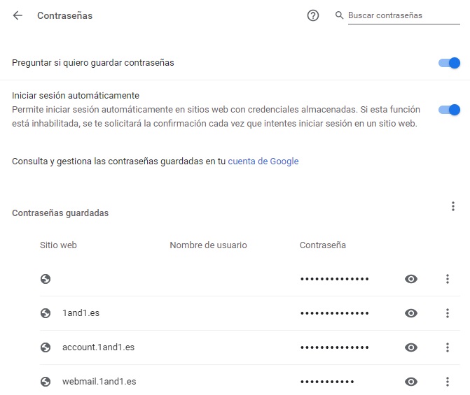 Stiamo creando e generando una nuova password ogni tanto, quindi non ricordiamo davvero le vecchie piattaforme. Fortunatamente per te (o no), Google Chrome memorizza tutte queste informazioni . Torna a "Impostazioni" e individua la sezione "Password". Proprio lì, il browser mostra tutti i tasti che abbiamo. Se vai in fondo rimarrai sorpreso, poiché vedrai le password da molto tempo fa e che potresti non ricordare nemmeno. In questo caso, fai clic sul simbolo "X" per rimuoverlo dal profilo .