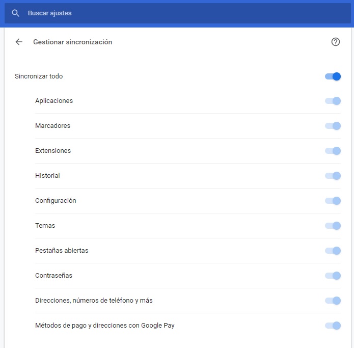 All'interno vedrai tutti gli elementi che hai attivato per la sincronizzazione nel browser Chrome, sempre con il tuo account Google e ogni volta che accedi . La nostra raccomandazione è semplice: se vuoi che la tua sicurezza venga prima di tutto e sei abituato a utilizzare il tuo account su PC molto diversi, non esitare a portarti via tutto. Ora, se vuoi che gli elementi vengano sincronizzati, seleziona bene ciò che vuoi rimanere nel cloud.